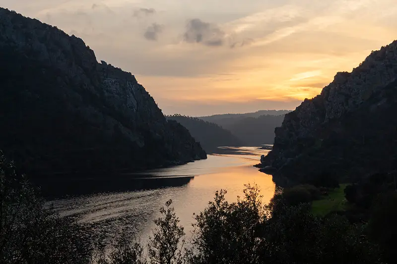 Seguindo para sul, o rio Tejo aproxima-se em Vila Velha de Ródão, terra de monumentos naturais como as Portas de Ródão e de miradouros que abrem a paisagens de cortar a respiração. A viagem, curta e serpenteante, mantém o olhar preso nas encostas e no brilho da água.