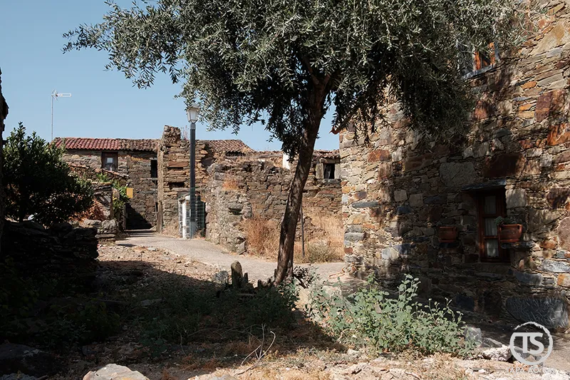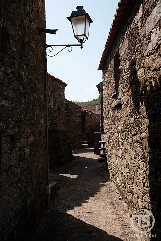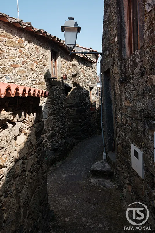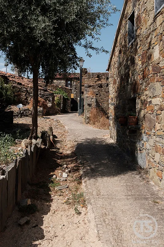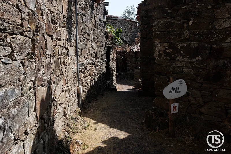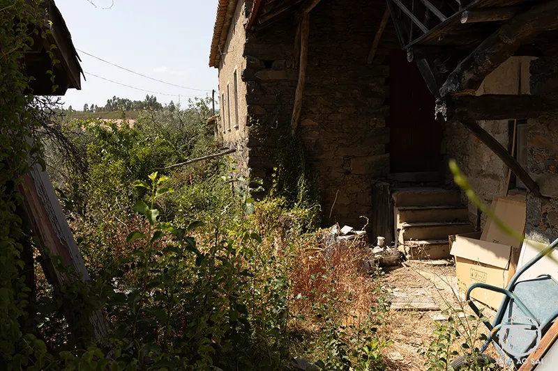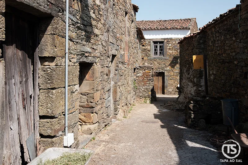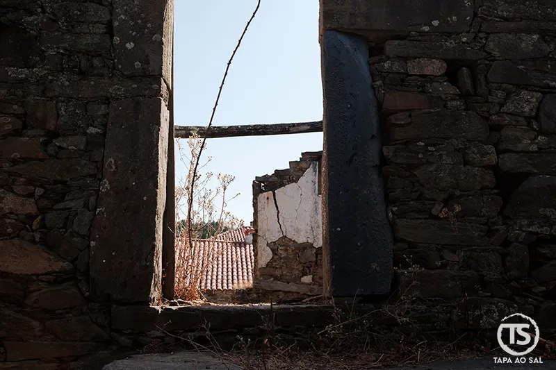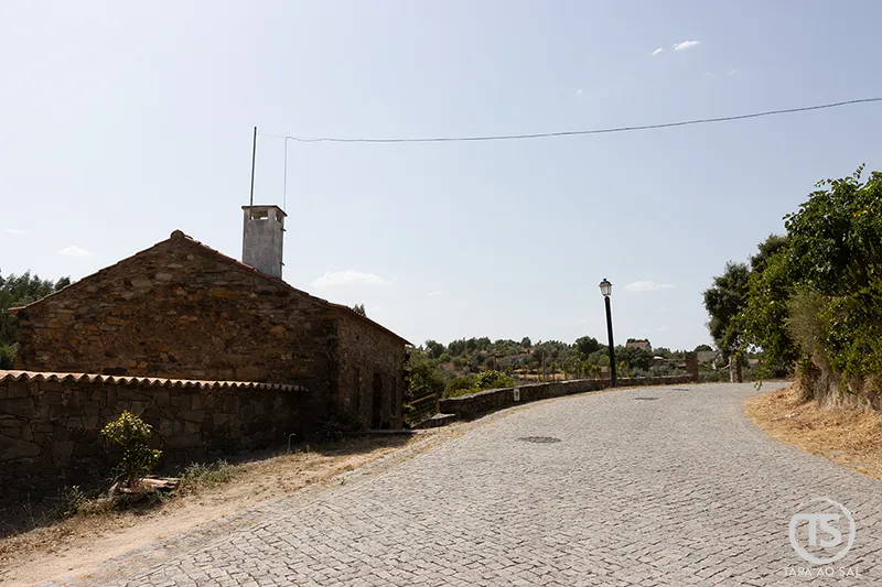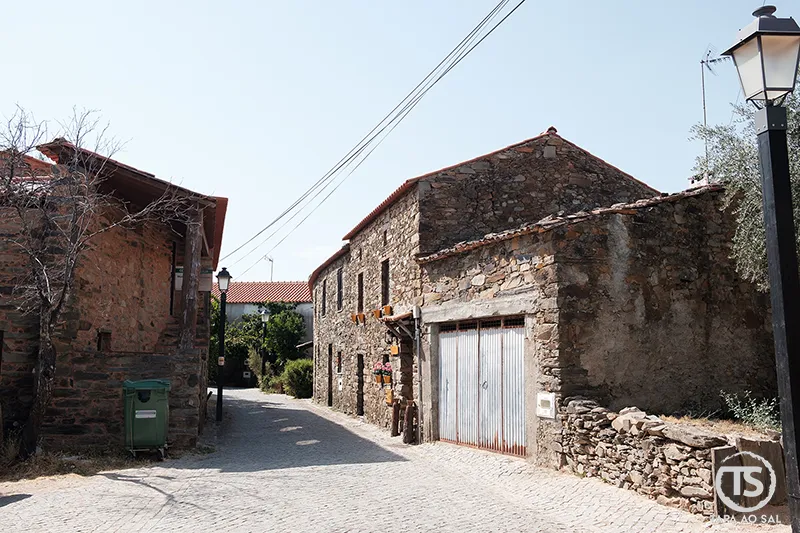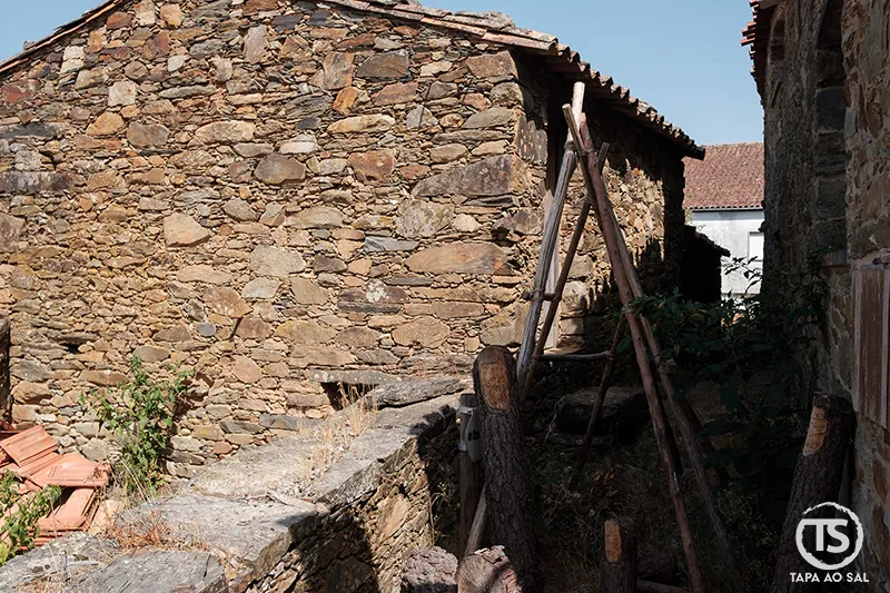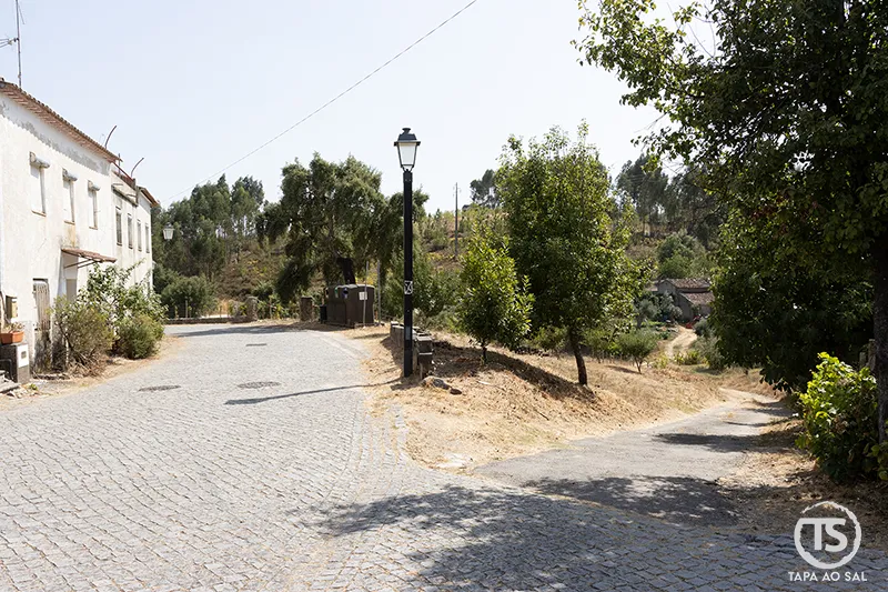 A aldeia, impecavelmente organizada, revelava-se aos poucos: casas recuperadas ao lado de outras que ainda aguardam mãos pacientes, recantos onde a vida rural se mantém discreta mas viva.