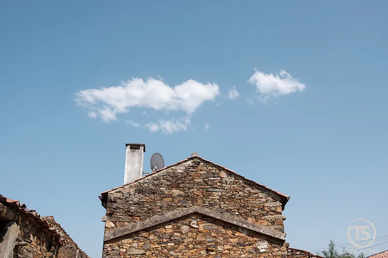 As casas de xisto, com as suas paredes irregulares e tons quentes, são a espinha dorsal da aldeia. Algumas recuperadas com detalhe e respeito pela construção original; outras, marcadas pelo tempo, mostram o lado cru e autêntico da Figueira. A luz do fim da tarde acentua os contornos e revela pequenas variações na cor da pedra, como se cada fachada guardasse a sua própria memória.