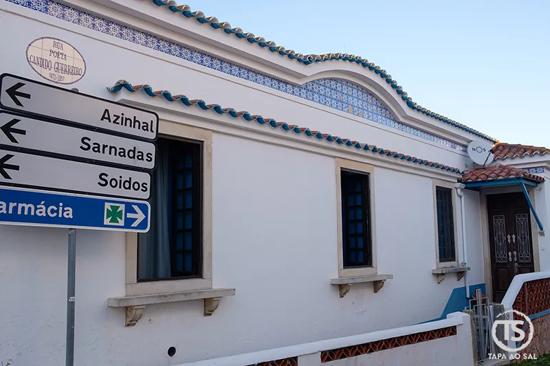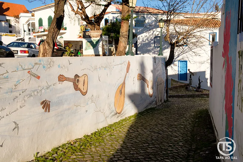 As casas brancas dominam a paisagem urbana, quase sempre decoradas com barras azuis ou amarelas que refletem a tradição arquitetónica algarvia. Algumas portas antigas mostram sinais de décadas de uso; outras permanecem abertas, deixando escapar fragmentos da vida quotidiana da aldeia.