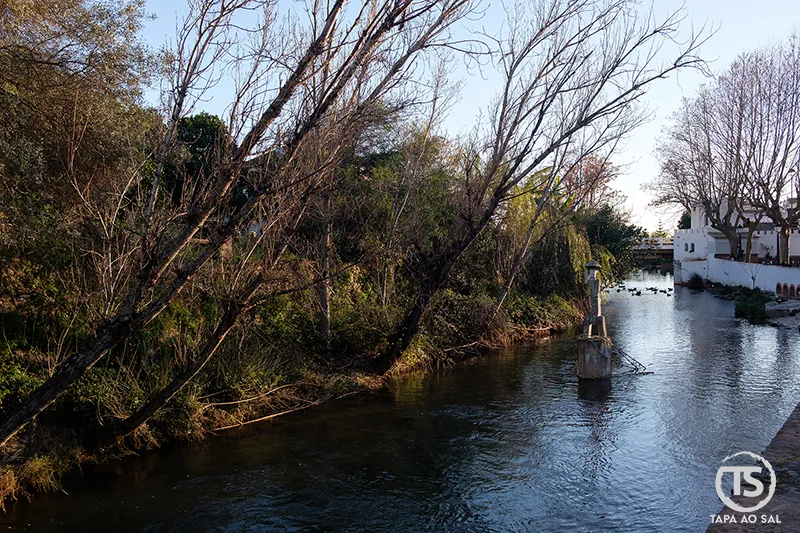 Alte o que visitar ribeira de Alte com ponte e aves junto à água
