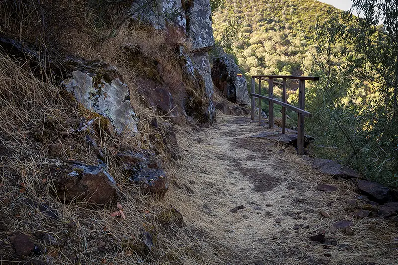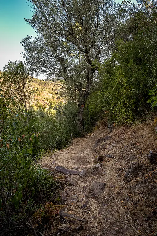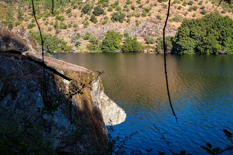 Nesta zona, o trilho cruza a linha férrea. Com o devido cuidado, pode parar um pouco na Praia Fluvial da Ortiga para descansar ou fazer uma pequena pausa à sombra.