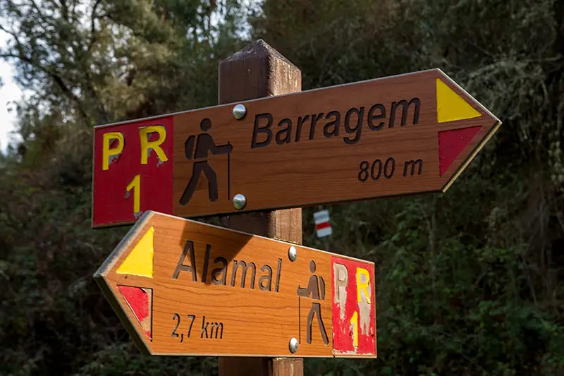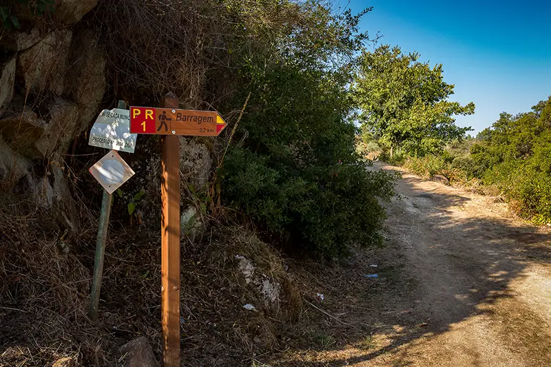 Sim. Está marcado com as cores amarelo e vermelho (sinalética oficial de Pequena Rota – PR). Ainda assim, recomendamos levar o ficheiro GPX ou usar uma app de trilhos como Komoot ou AllTrails.