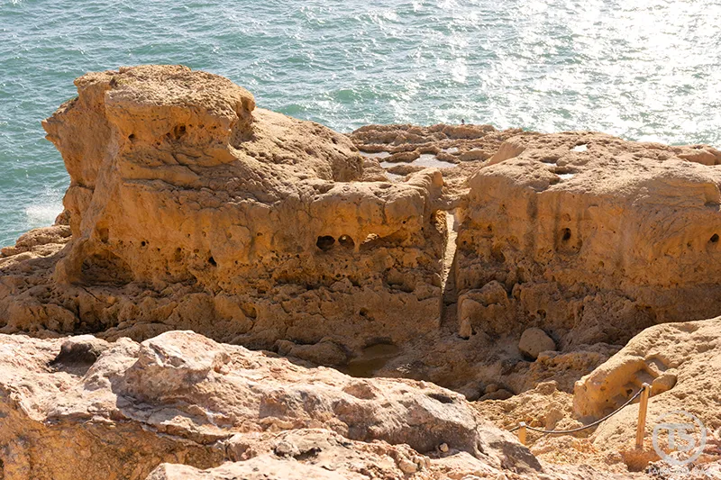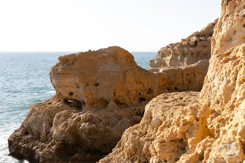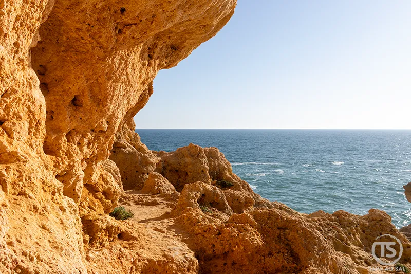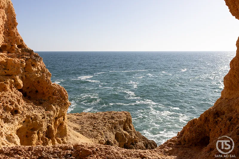 Seguindo pela costa, o caminho conduz naturalmente ao Algar Seco Carvoeiro, um dos lugares onde a paisagem ganha uma força quase primitiva. As rochas esculpidas pelo vento e pela água formam arcos, grutas e plataformas naturais que parecem suspensas sobre o Atlântico.
