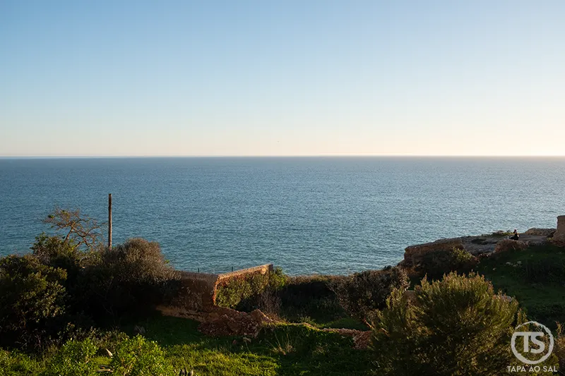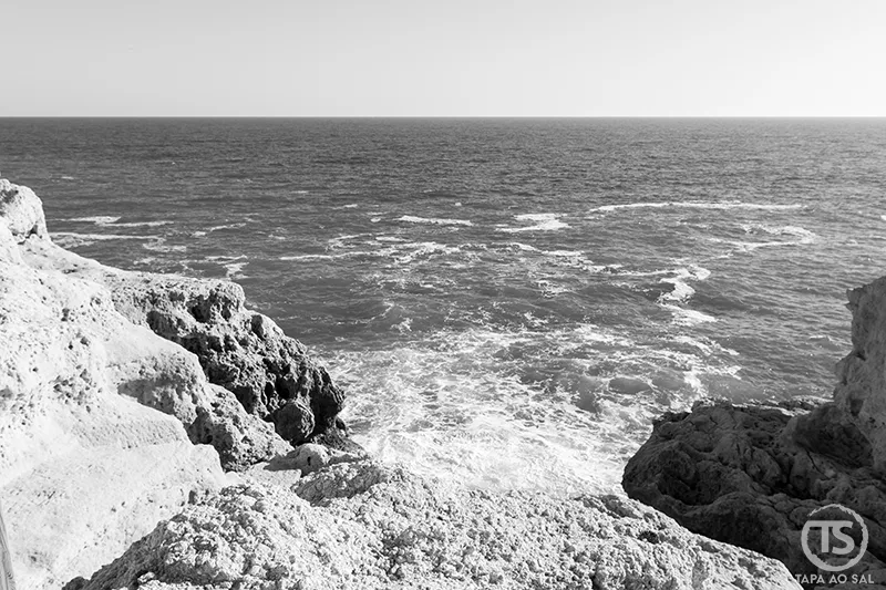 O trilho não exige pressa. Pelo contrário, convida a parar, observar o contraste entre o azul intenso do Atlântico e o tom claro da pedra calcária, escutar o vento que atravessa as plataformas naturais e perceber como a vila desaparece gradualmente atrás de nós.