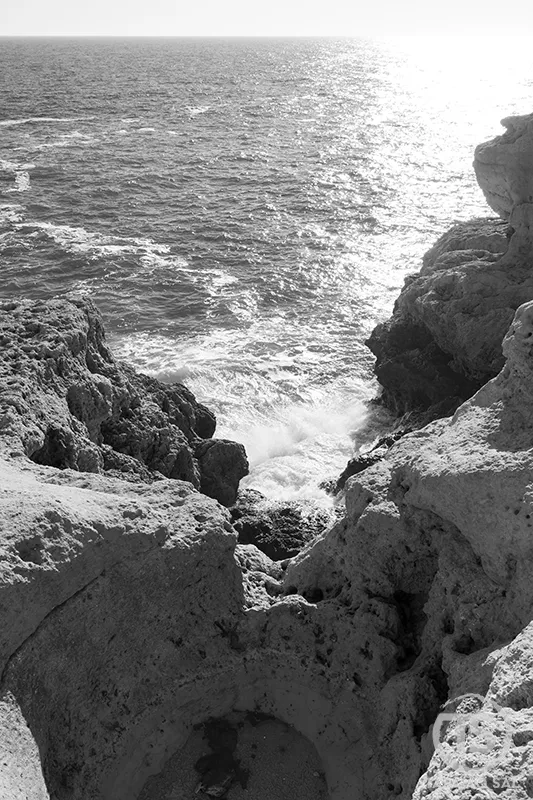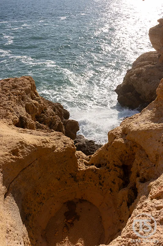 Vista da costa, a linha das falésias parece contínua e quase impenetrável. Mas basta afastar-se alguns metros da terra para perceber como o litoral se transforma. As rochas abrem-se em arcos naturais, pequenas praias escondidas surgem entre paredes calcárias e a luz entra nas grutas como um reflexo dourado em movimento.