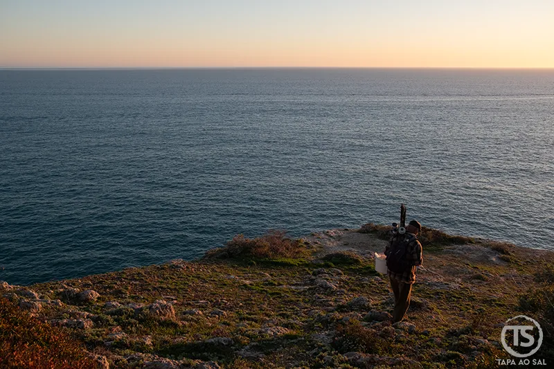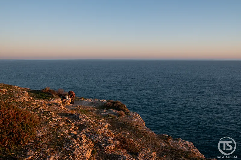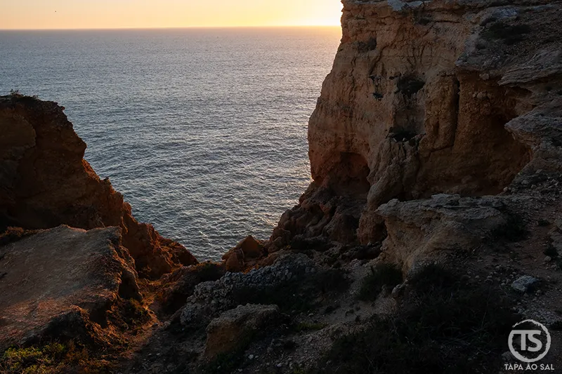 Quando o sol começa a baixar, regressar às falésias transforma tudo outra vez. A luz dourada percorre as rochas e cria sombras longas que acompanham o caminho até ao entardecer. É talvez aqui que o roteiro encontra o seu ponto mais marcante: caminhar sem pressa enquanto o céu muda lentamente de cor, percebendo que o verdadeiro percurso não está apenas nos lugares visitados, mas na forma como o tempo se dilui entre o mar e o horizonte.
