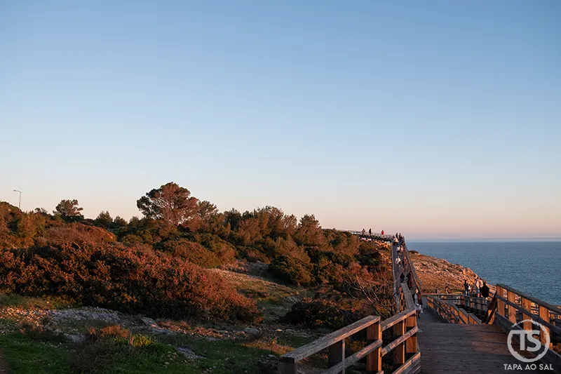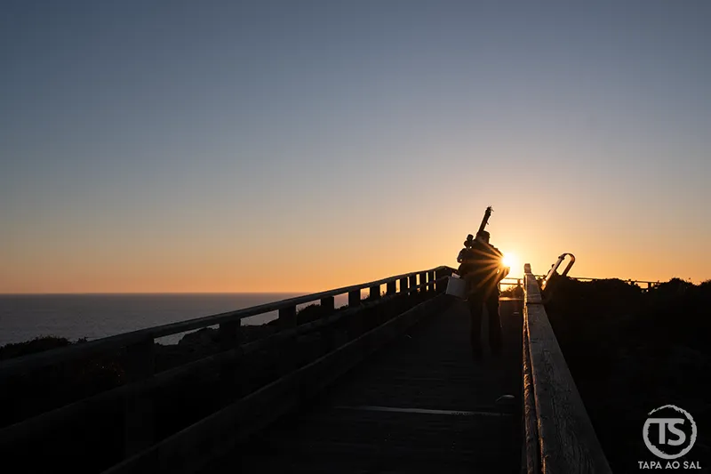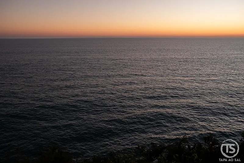 Para quem prefere prolongar o movimento do dia, caminhar pelas falésias depois do pôr do sol é uma experiência inesperadamente tranquila. O caminho que durante a tarde estava cheio de luz torna-se mais sereno, e o som constante do Atlântico ganha protagonismo.