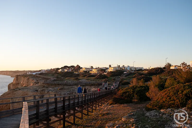 O passadiço Carvoeiro liga vários pontos da costa através de um percurso simples, mas visualmente marcante. Caminhar por aqui é sentir a mudança constante de perspetiva: a cada curva surge um novo miradouro, uma nova linha de horizonte, uma nova forma das falésias a recortar o céu.