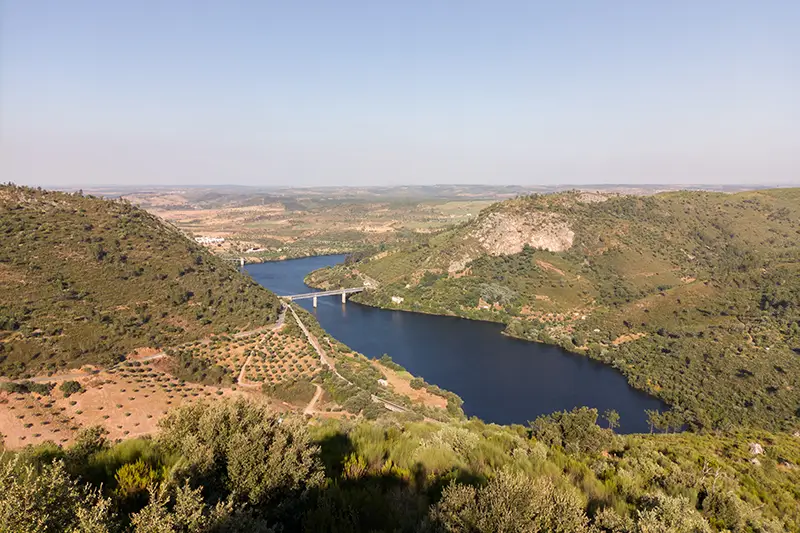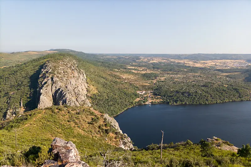 Da torre vêem-se, mas só se percebem verdadeiramente de perto. As Portas de Ródão são uma garganta geológica talhada pelo Tejo ao longo de milhões de anos. Pode-se caminhar até um dos miradouros ou, melhor ainda, fazer um passeio de barco pelo rio. A sensação de atravessar aquele corredor de pedra, com escarpas de um lado e de outro, é difícil de descrever. Mas fica. Como tudo o que é antigo e maior do que nós.
