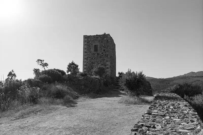 O que resta da estrutura é pouco, mas suficiente. A torre, de planta quadrada, ergue-se sem ornamento, como se a simplicidade fosse a sua força. Foi reforçada, limpa, recuperada. Há degraus metálicos por dentro que nos convidam a subir, e cada patamar é um instante de silêncio novo. As muralhas que a rodeavam deixaram vestígios, fragmentos de uma geometria defensiva que hoje serve apenas à imaginação.