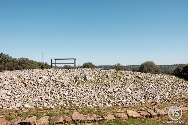 A chegada faz-se por uma paisagem que, à primeira vista, parece tranquila e discreta. Terra quente, vegetação baixa, ondulações suaves no relevo e uma sensação estranha de permanência. Nada aqui tenta impressionar depressa. E talvez seja precisamente por isso que o impacto se torna maior quando percebemos que este não é apenas mais um ponto de interesse arqueológico, mas uma das expressões mais antigas e marcantes da pré-história no sul de Portugal.