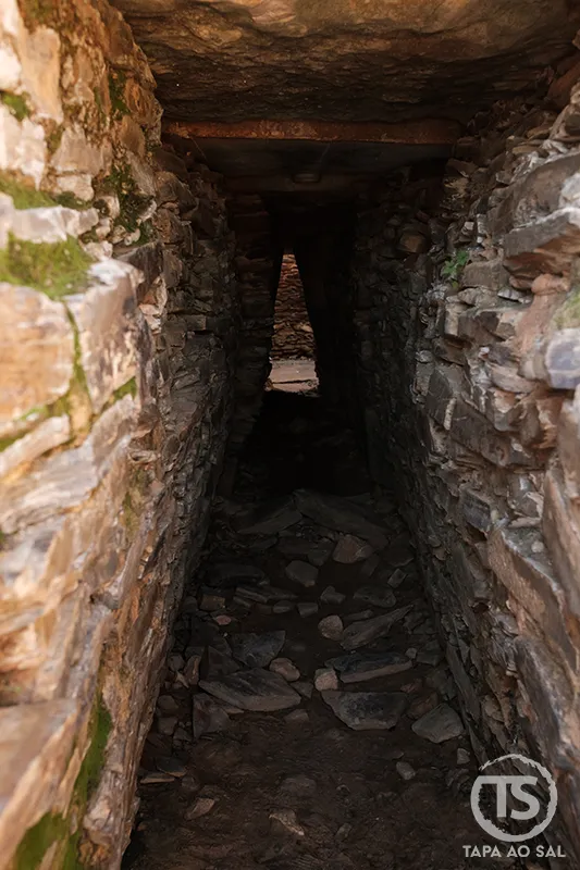 É difícil não imaginar o significado que um espaço destes teria para as comunidades que aqui viveram. Mesmo sem cair em romantizações, percebe-se que não estamos perante uma construção aleatória. Há intenção na forma como o corredor conduz, na forma como a câmara se organiza e na própria experiência de entrada.