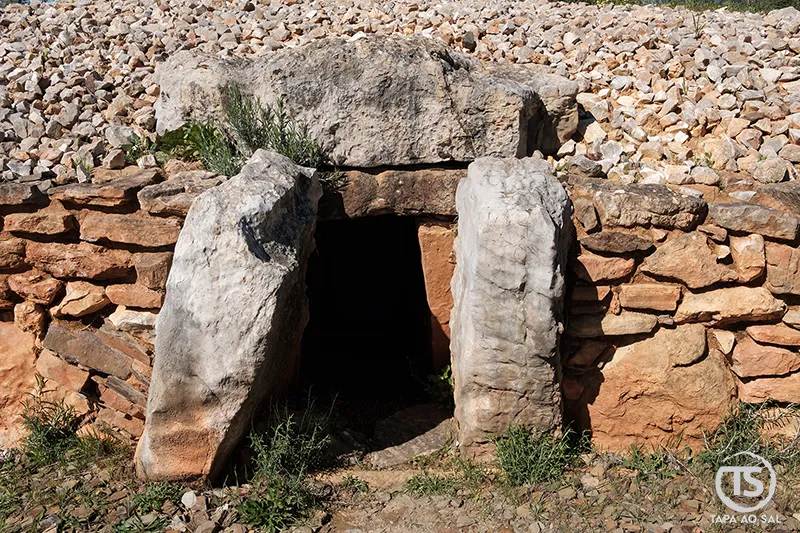 Monumento megalítico de Alcalar com entrada em pedra e corredor de acesso na necrópole de Alcalar