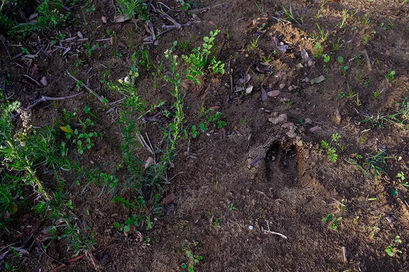 Pegada de javali encontrada no solo durante o passeio rural em Alenquer, revelando a presença de vida selvagem na área. Autor: Sérgio Santos