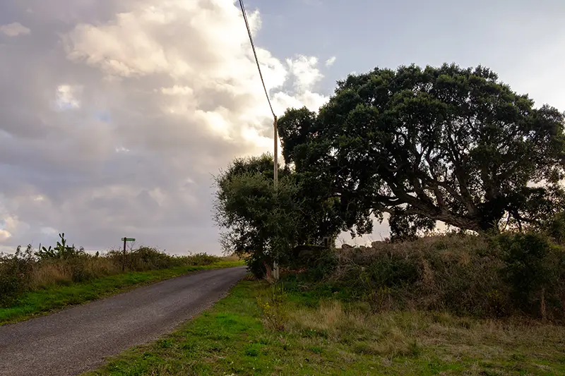 Estrada rural ao lado de sobreiro protegido em Alenquer