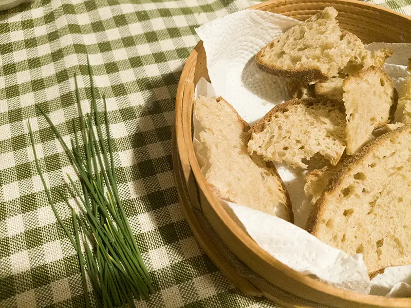 Abrimos uma garrafa de vinho monocasta Sousão de 2019, da Casa Santos Lima, e o aroma da terra misturou-se com o ar de fim de tarde. O pão torrado de massa mãe, que nós próprios fizemos, trouxe à mesa o sabor da farinha da moagem Paulino Horta, uma pequena, mas importante, peça do puzzle rural de Alenquer. Esta moagem, situada perto do sobreiro que descobrimos, simboliza a continuidade da tradição e do respeito pelo trabalho artesanal, algo que tanto valorizamos no Tapa ao Sal.