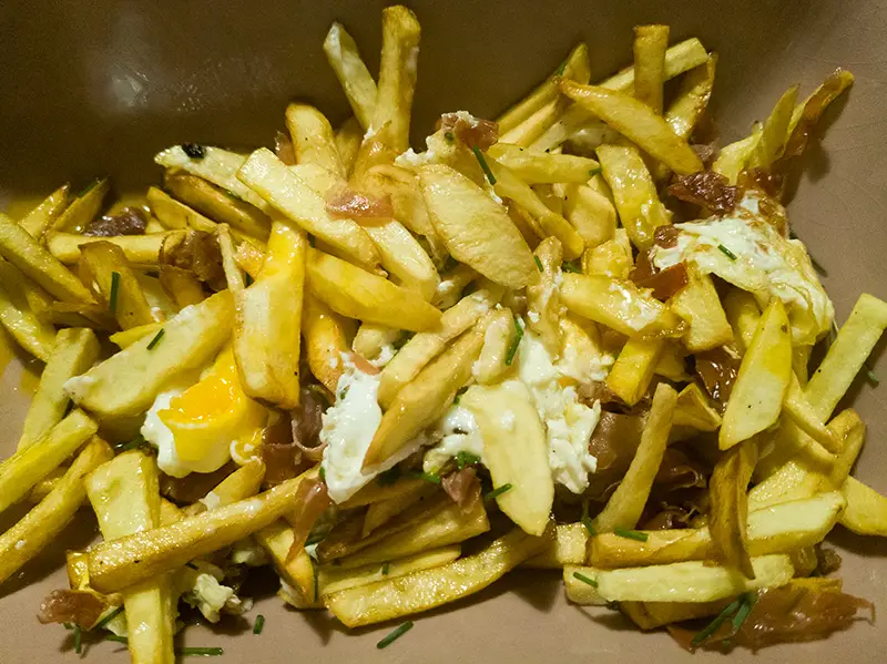 Juntámos ao pão, ovos rotos com presunto de porco preto, e camarão selvagem frito. Simples, mas autêntico. Assim como o sobreiro que encontramos no meio do caminho, estes ingredientes falam de uma terra rica, uma terra que oferece, uma terra que se dá a quem a compreende. Cada prato que saboreámos foi mais do que um petisco; foi um símbolo do que Alenquer representa para nós: tradição, autenticidade e proximidade.