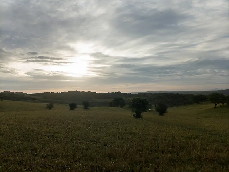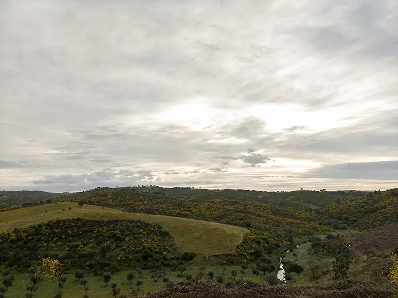 As nuvens encobriam o céu, mas o sol rompia aqui e ali, oferecendo momentos breves de luz dourada sobre a terra ainda húmida da noite anterior. A minha rota começou e terminou em Nisa, num circuito que me levou até ao santuário da Senhora da Graça e depois em direcção à base da serra, atravessando caminhos rurais e trilhos pouco movimentados.