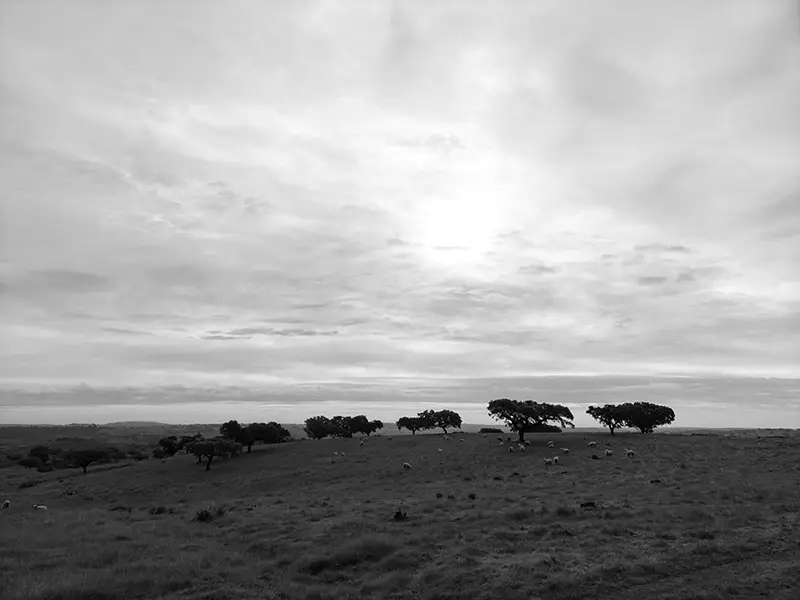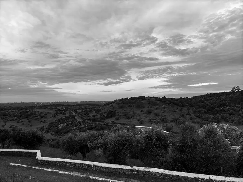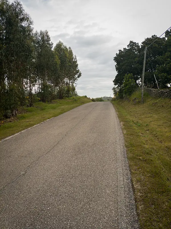 Pelo caminho, parei várias vezes para registar com a câmara os contrastes de luz, os detalhes da vegetação e a forma como a chuva, que ainda não tinha chegado, parecia anunciar-se com subtileza no horizonte. As fotografias captadas durante este percurso mostram um lado menos conhecido do dia da romaria: o momento antes da festa, onde reina o silêncio e a esperança de um dia em suspenso.