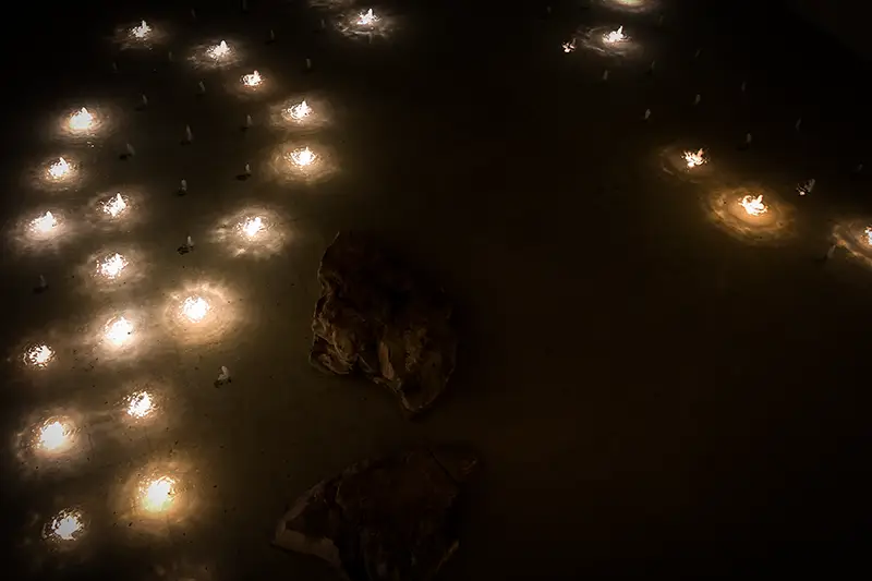 Olhámos em redor e vimos um mar de velas acesas. Uma luz quente e serena que parecia aquecer tudo à sua volta.