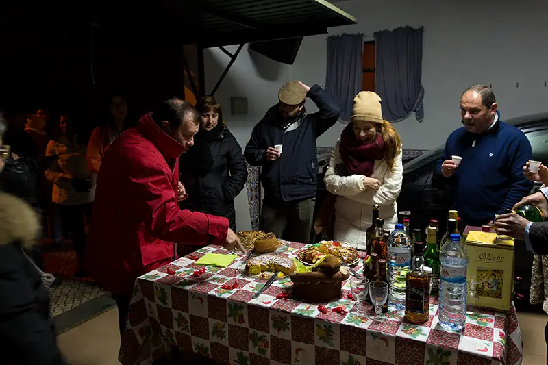 Quem está dentro escuta. Sorri. E abre a porta. A recompensa não é dinheiro, é mesa farta, é partilha. Bolo-rei, filhoses, licor, vinho quente. Tudo o que aquece corpo e alma. Os visitantes entram, comem, bebem, agradecem… e seguem caminho. Ainda há muitas portas por onde cantar.