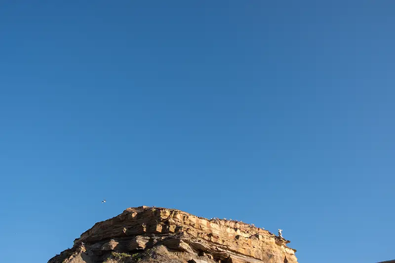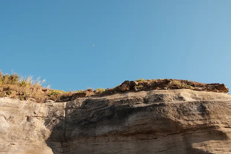 Pelo caminho, há pontos onde vale a pena parar. Um deles, no lado norte da arriba, oferece uma vista panorâmica sobre Porto Dinheiro. A praia, vista de cima, parece um recorte esculpido à força, encaixado entre paredes de rocha. O som das ondas sobe em cadência. A luz muda lentamente. Ao fim da tarde, o lugar transforma-se, e tudo ganha uma beleza que não precisa de palavras.