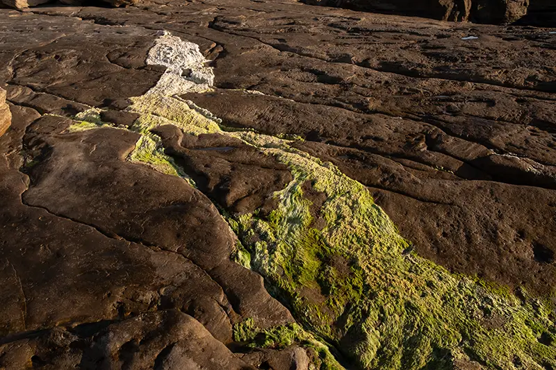 Quem procura fotografar a Praia de Porto Dinheiro encontra aqui mais do que paisagem, encontra camadas de história. Quando a maré baixa, surgem as poças naturais, as placas de rocha exposta, os tons verdes e ferrugem que transformam o chão num mosaico orgânico. A luz desenha caminhos entre os relevos, as fendas, os fósseis. É a geologia a falar, e cabe ao fotógrafo escutar.