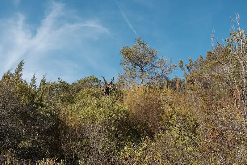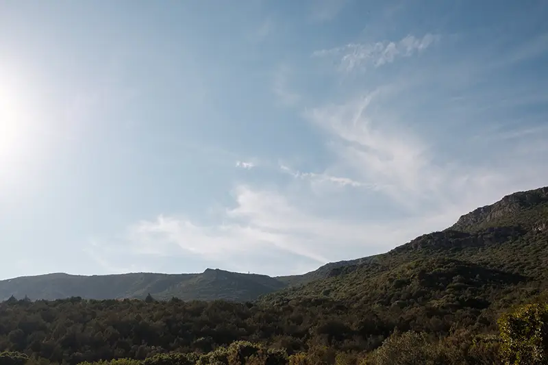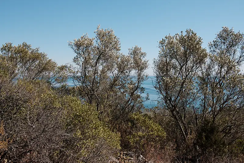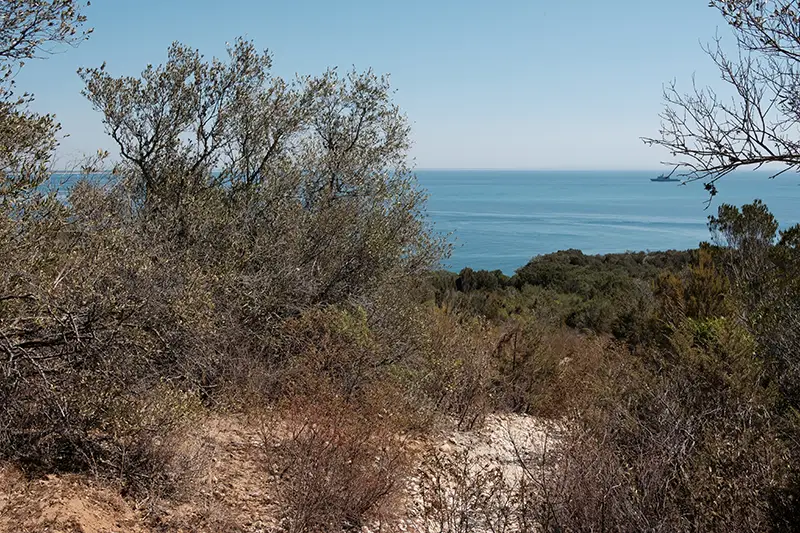 As encostas que rodeiam a praia estão cobertas por uma vegetação mediterrânica rica, com plantas como o rosmaninho e o medronheiro a espalharem o seu perfume no ar.