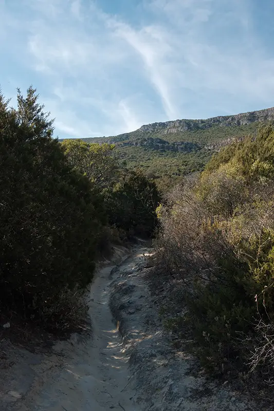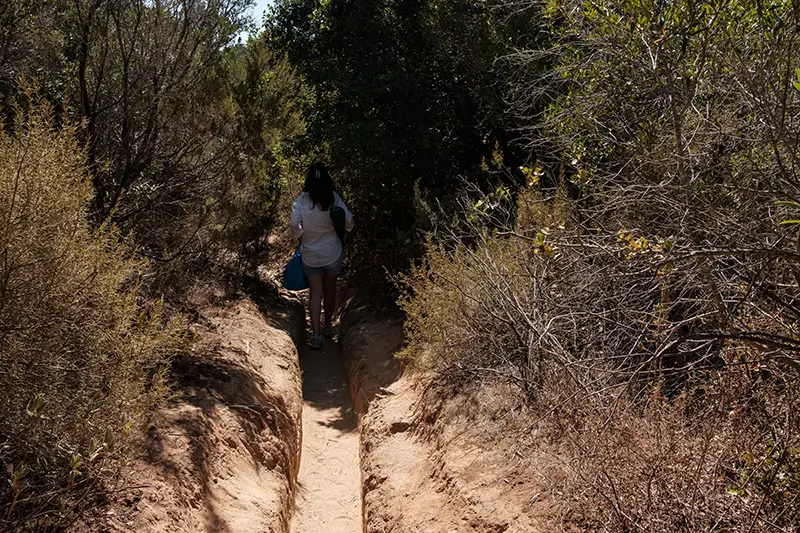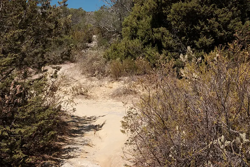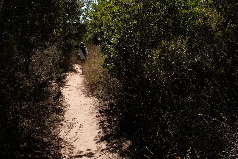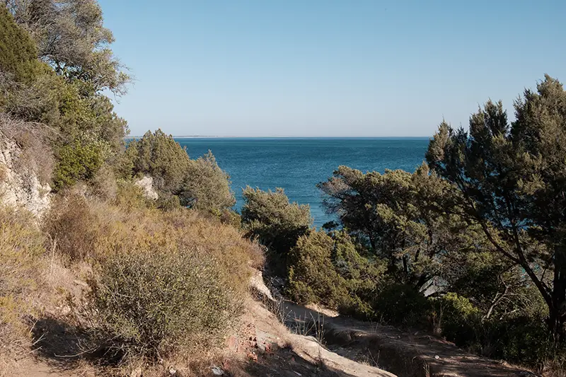 🥾 O início do trilho para a Praia dos Coelhos encontra-se entre o estacionamento da Praia do Creiro e a Praia de Galápos. É um caminho de terra batida, com inclinação, que demora cerca de 10 a 15 minutos a pé.
