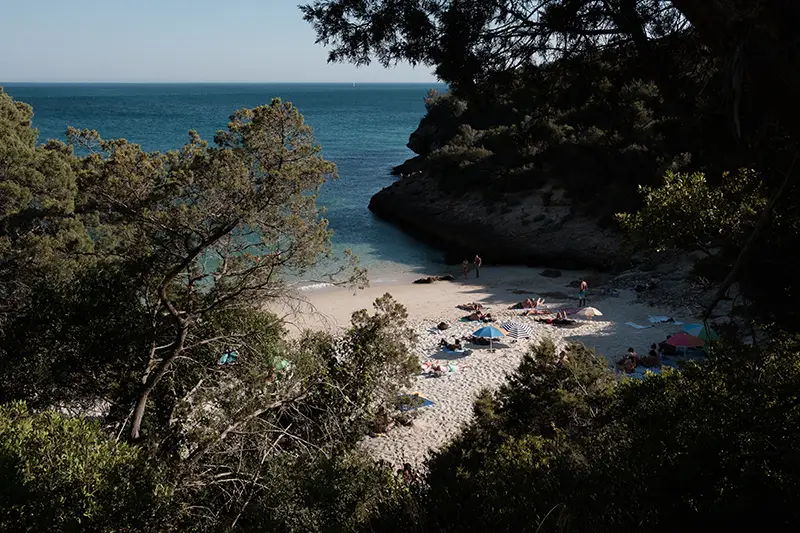 A Praia dos Coelhos é um verdadeiro tesouro escondido na Arrábida, oferecendo uma experiência de praia única e tranquila, rodeada por uma natureza exuberante e preservada.