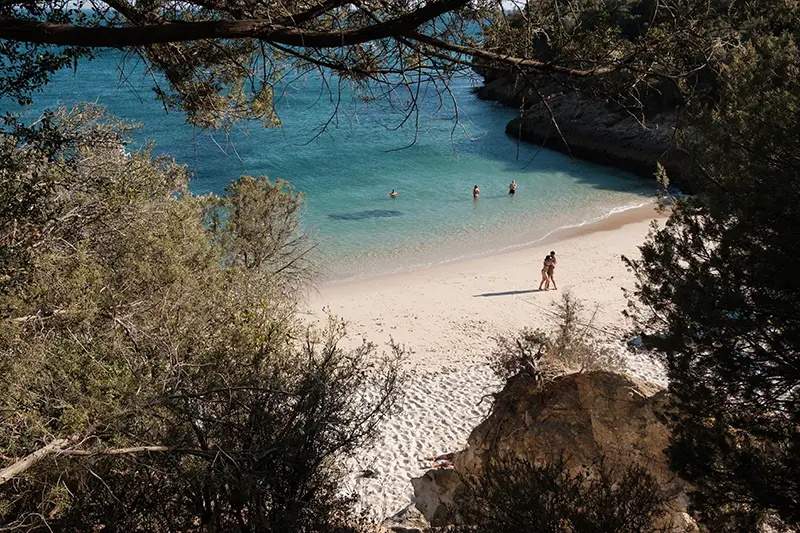 Embora possa ser desafiante para quem não está habituado a caminhar, o trilho é curto e, no final, a recompensa compensa: uma enseada tranquila, com águas cristalinas, rodeada de verde e silêncio.