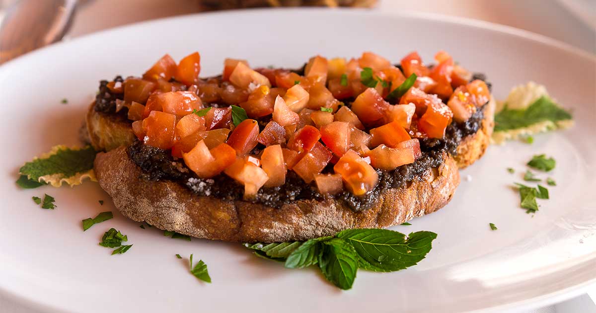 Pedi um crostini de pasta de azeitona com tomate e flor de sal…