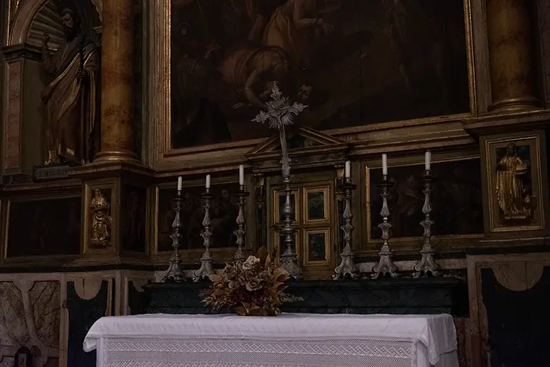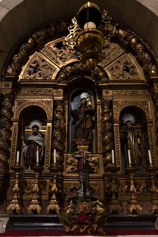 Ao longo das naves laterais, pequenas capelas abrem-se como grutas discretas. Cada uma delas é um mundo à parte, consagrado a um santo, a uma devoção, a uma história particular. Umas estão ricamente ornamentadas, com telas antigas e relicários em prata. Outras mantêm uma simplicidade que as torna ainda mais comoventes, como se o tempo lhes tivesse poupado os excessos, deixando-lhes apenas o essencial.