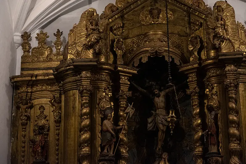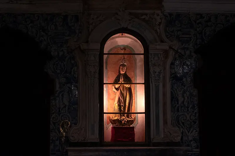 Não é preciso ser crente para perceber que há ali algo de intocável. A arte das talhas, o rumor dos bancos de madeira, a leveza com que a luz pousa no altar, tudo isso fala numa linguagem que não exige catecismo. Apenas atenção.