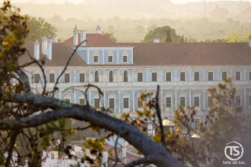 Vista ao entardecer de Vila Viçosa com o Paço Ducal em destaque